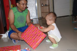 So finally, when the gift-giving was finished, she started opening her gifts with the help of her dad. Mas mukha ngang nanggugulo lang sya kesa nagbubukas ng gift. Alam kaya niyang gift niya un?