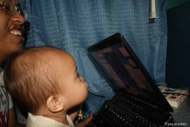 Came New Year, we didn’t have much fireworks this year but we made much noise. We bought big torotots. We watched the fireworks at our rooftop so when my bayaw lighted the first one, baby got scared because we were close to it. So we went down to watch the other firework. We also called Dann’s family in Leyte (through Skype) and showed baby to them.
