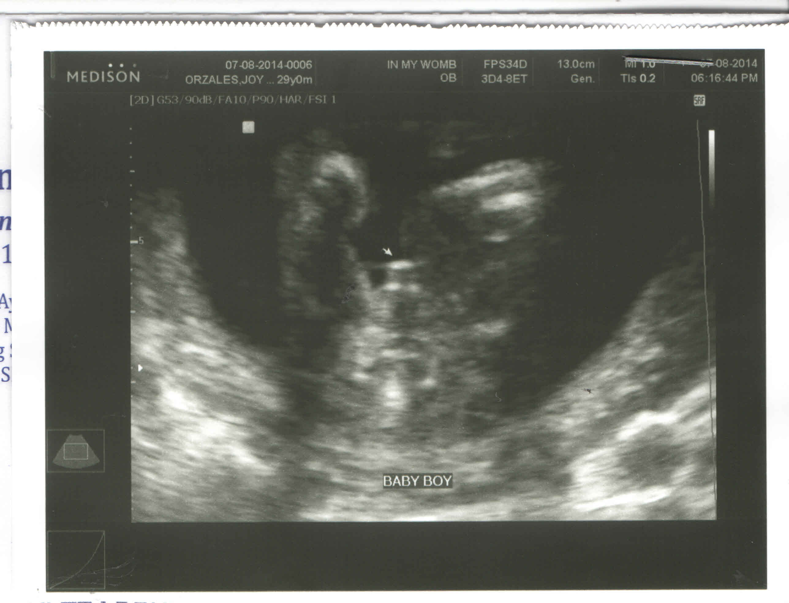 And so, as the scan went by, the doctor asked us if we already know the gender of the baby. We said no. She said, if it’s a boy, we would know even if I was only 16-17 weeks that time. At first, she said she can see a male part but she was not satisfied because it might be the umbilical cord. So she tried so many angles and it was still there. She wanted a good angle so she shook baby a bit and that’s when he opened his legs and the doctor got a good angle. Here’s the scan: