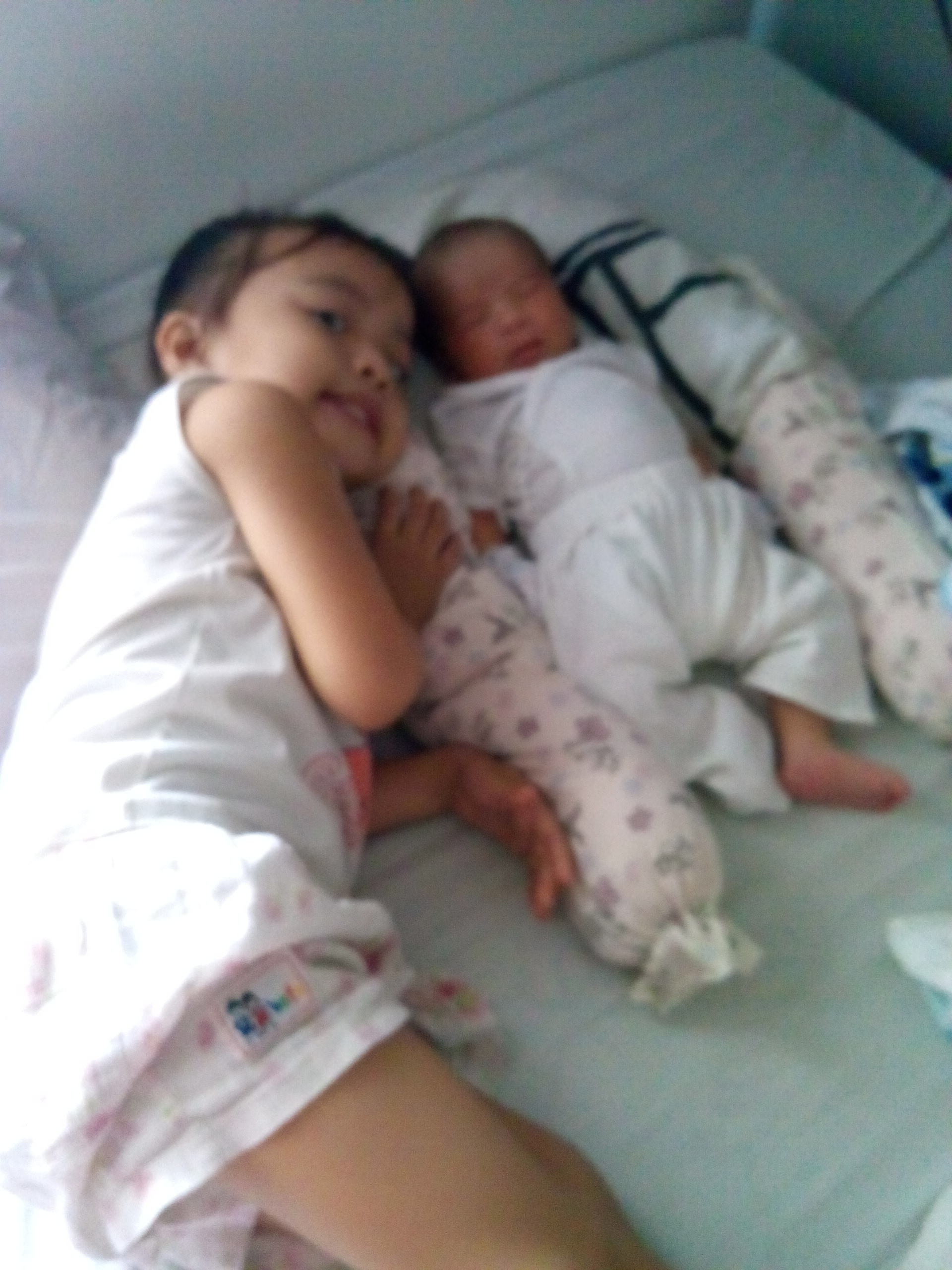 I was discharged on the third day. Ria was so happy when she saw her brother. She wanted to carry him but she can’t.