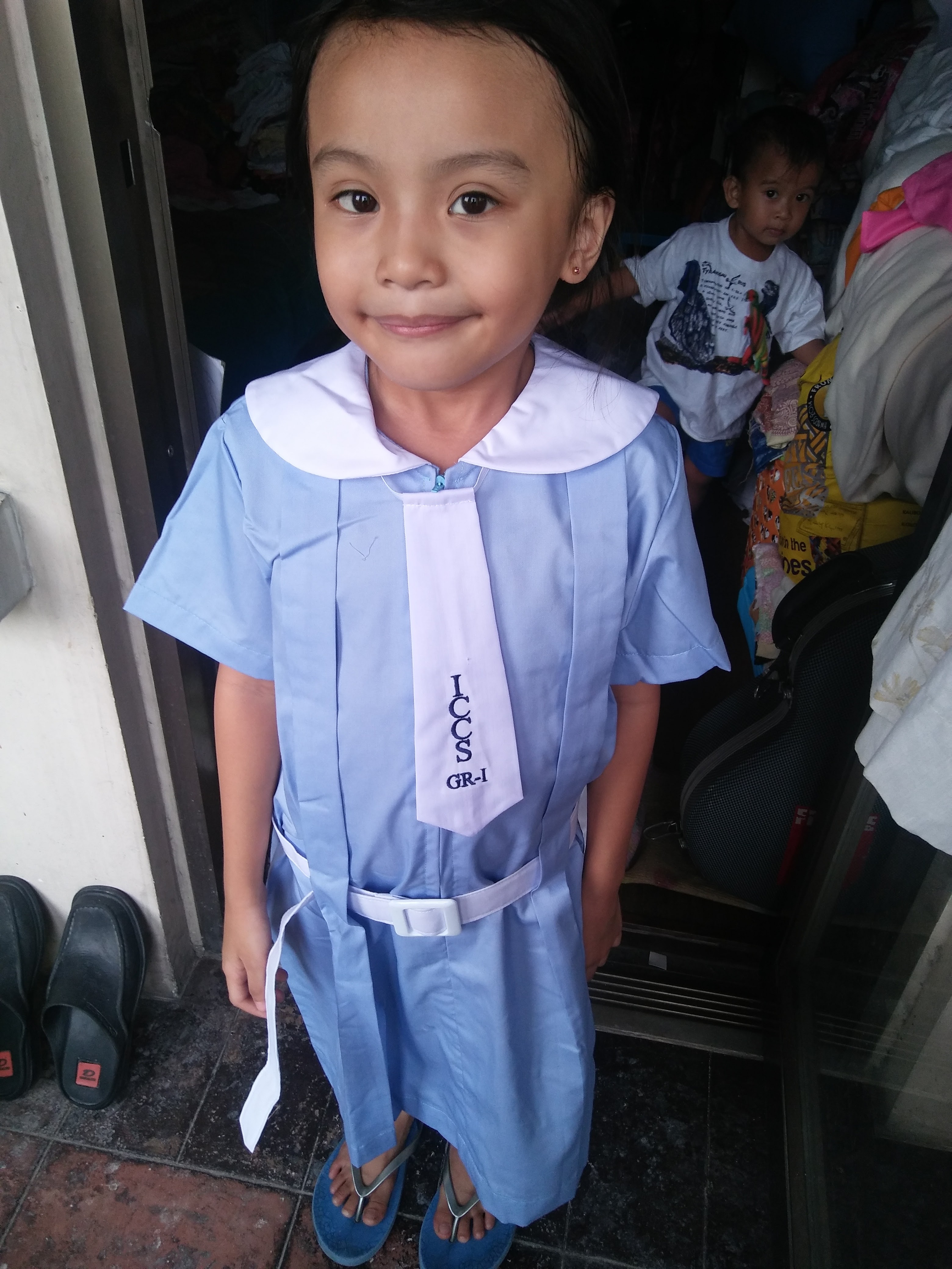 So here’s Ria wearing the daily uniform (with my son photobombing at the back. lol). I am actually excited for her. It’s like I will be the one who will go to school. Haha.
