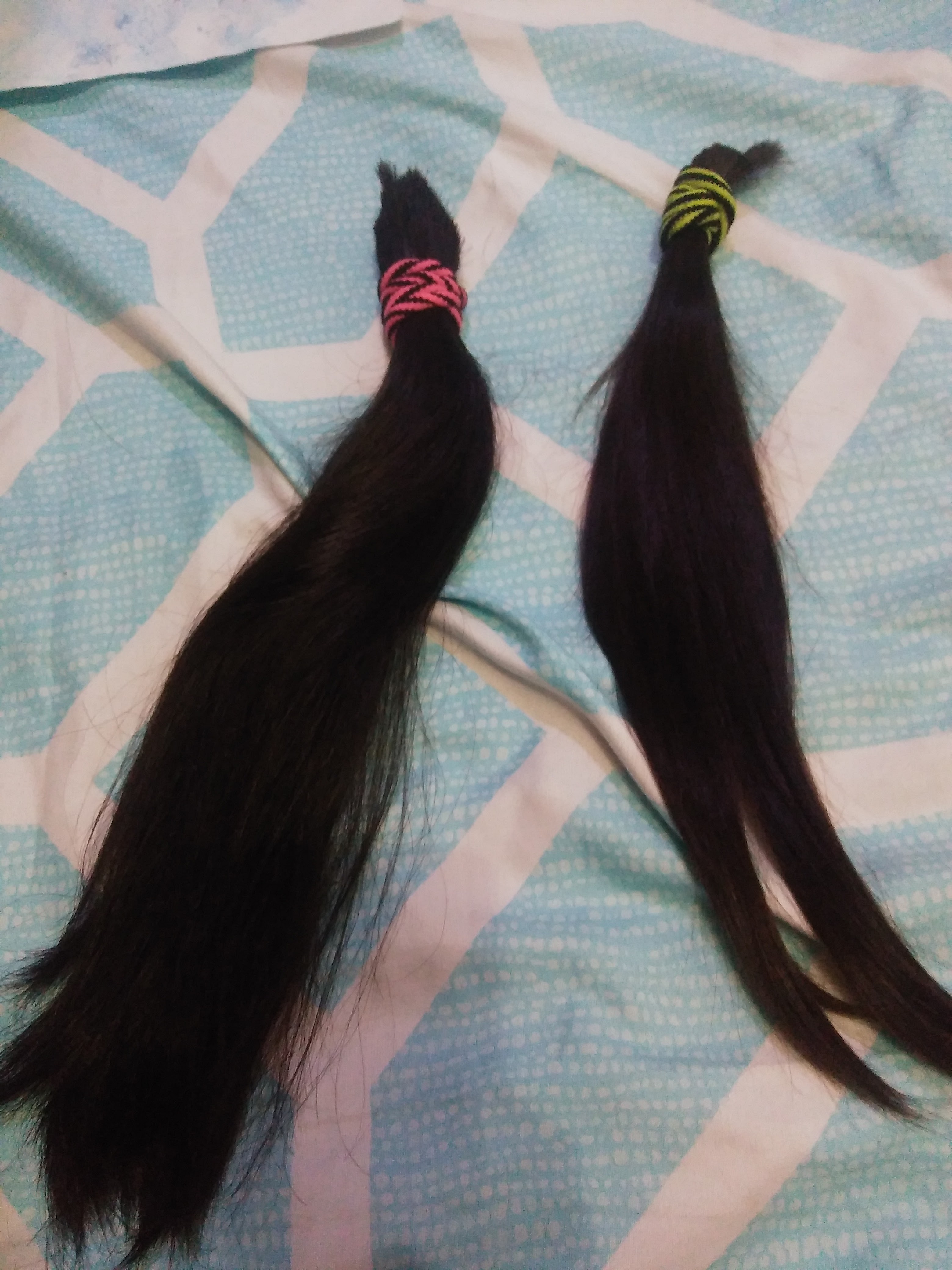 – We CANNOT use hair which has been colored/dyed, permed, or bonded. [Processed hair is too dry, weak, brittle, and coarse. It breaks, tangles, and sheds easily, splitting ends during the manufacturing of the prosthesis]