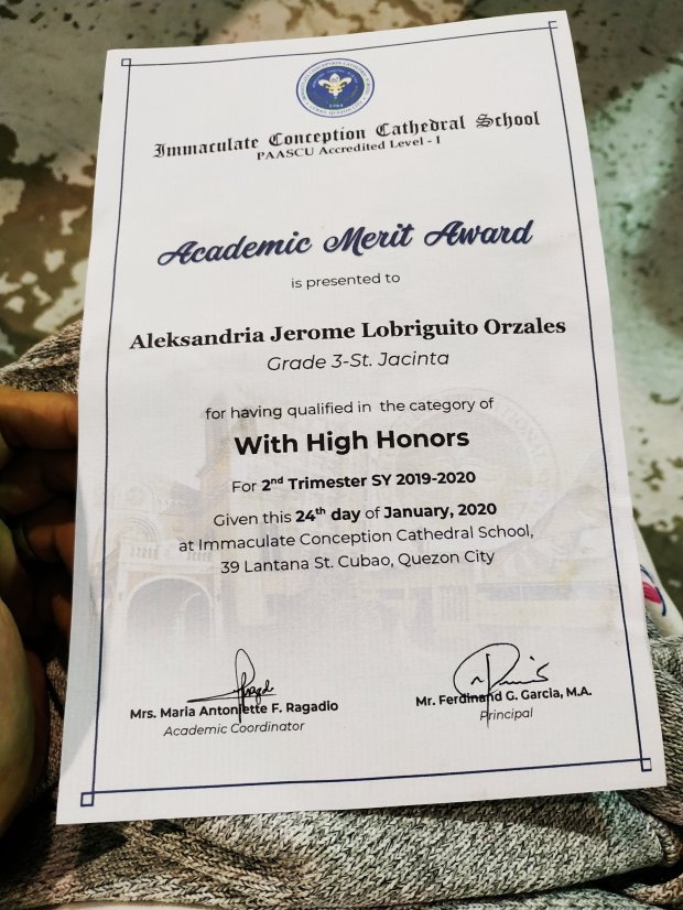 We were late. And when we saw her, she was crying already because we were not able to accompany her when she received her certificate.